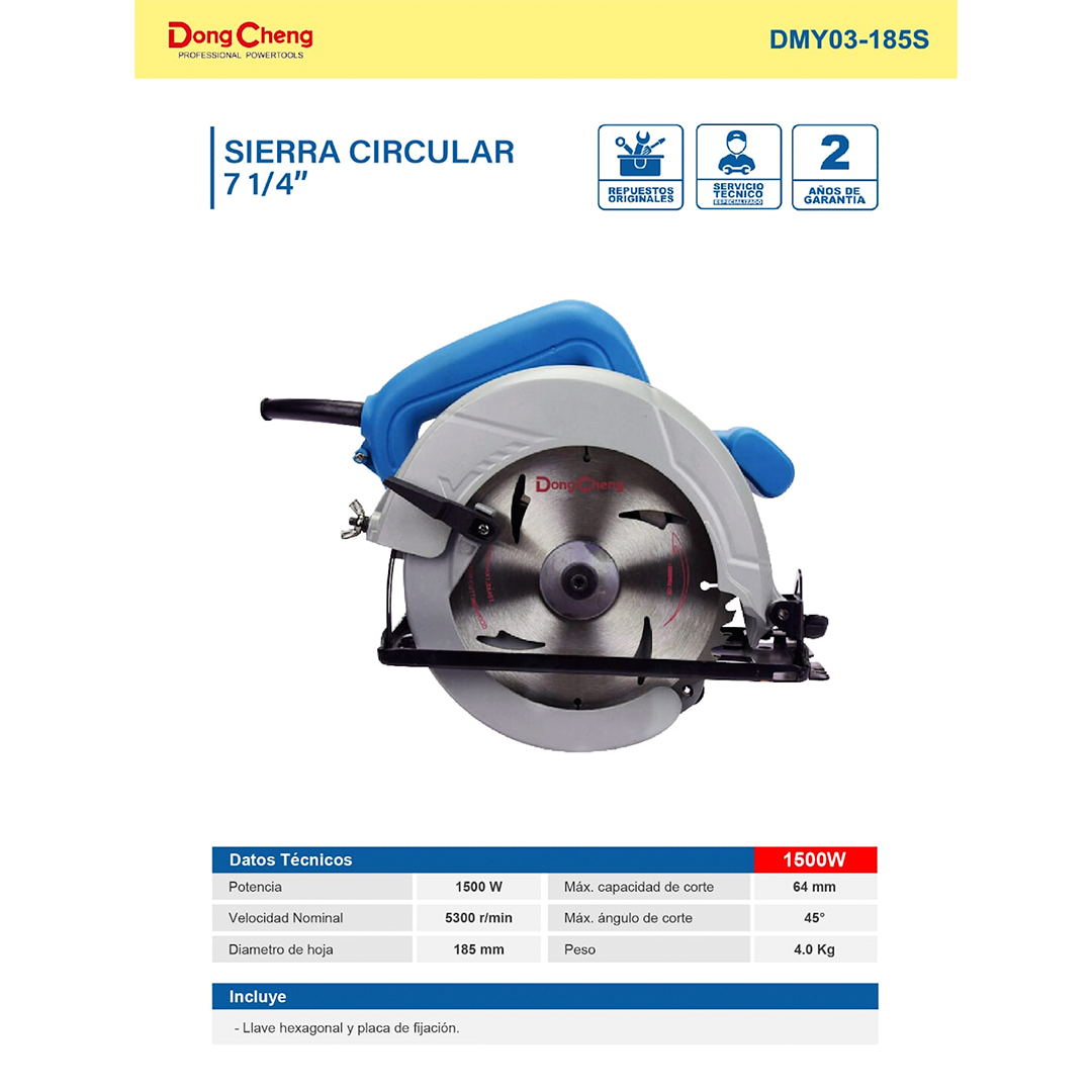 Sierra Circular Radial de Mano 7-1/4″ DongCheng DMY03-185S 1500W.