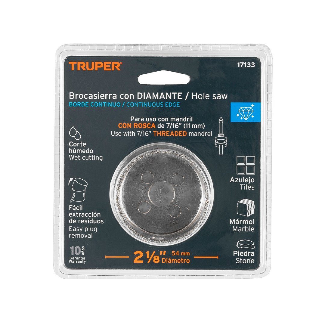 Sierra copa con diamante de 2 1/8" borde continuo TRUPER cantidad