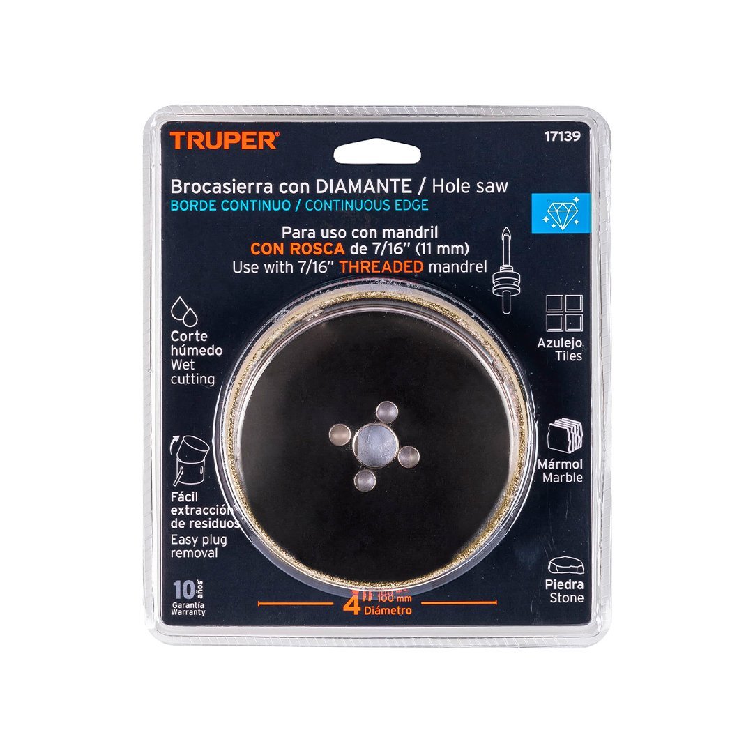 Sierra copa con diamante de 4″ borde continuo TRUPER