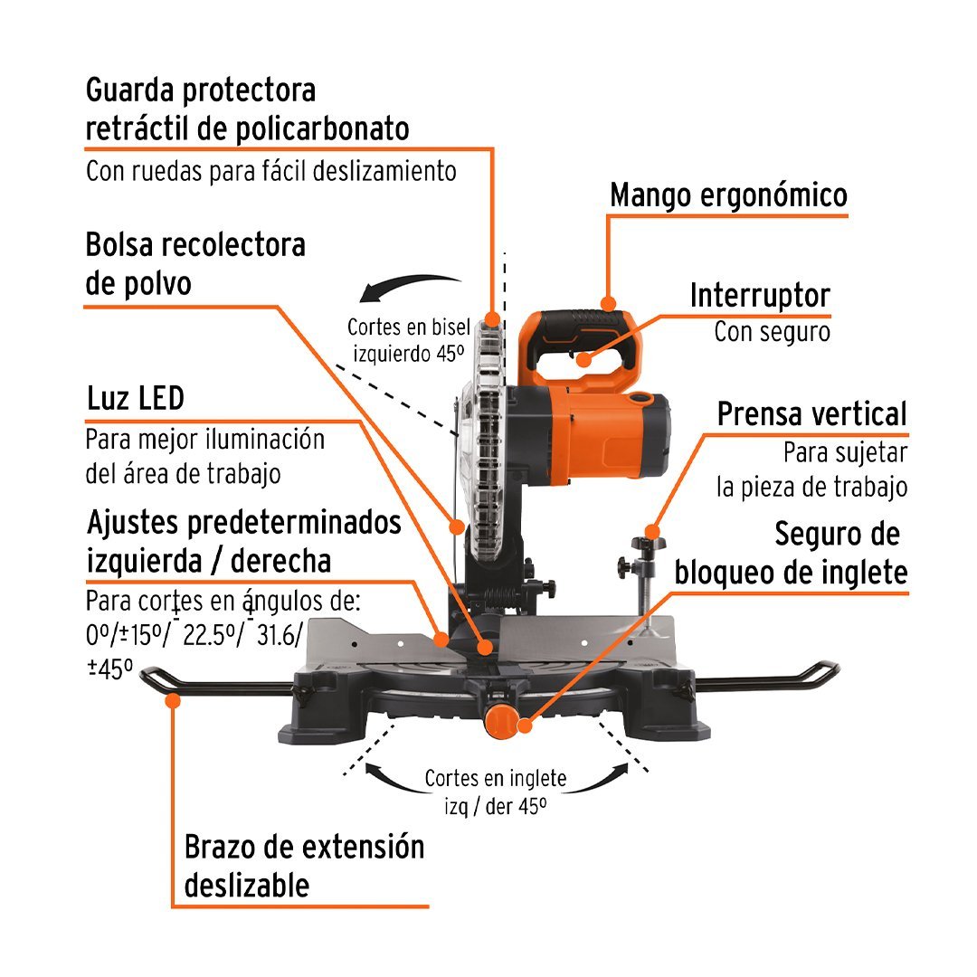 | Corte en inglete 0° a 45° | Izquierda / Derecha |