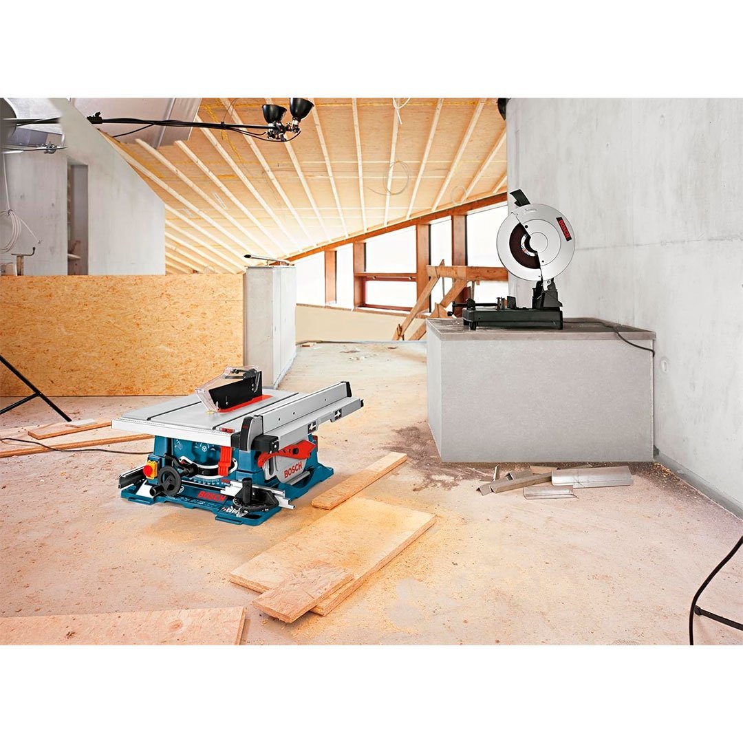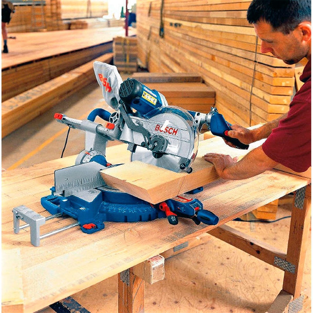 Robusto brazo telescópico con doble sistema de correderas permite cortar piezas de madera de hasta 305 mm de anchura.