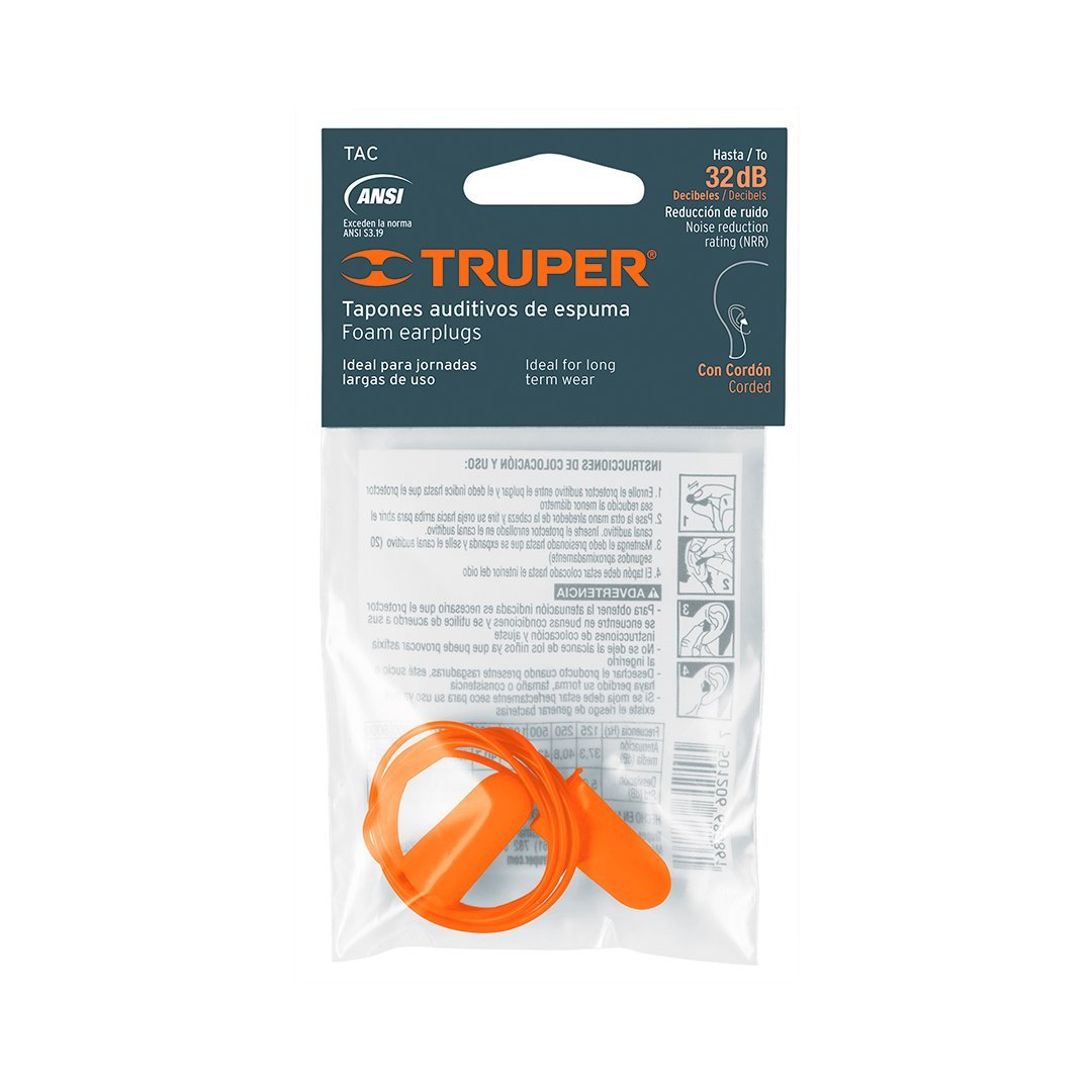 Tapón auditivo desechable de espuma con cordón TRUPER cantidad
