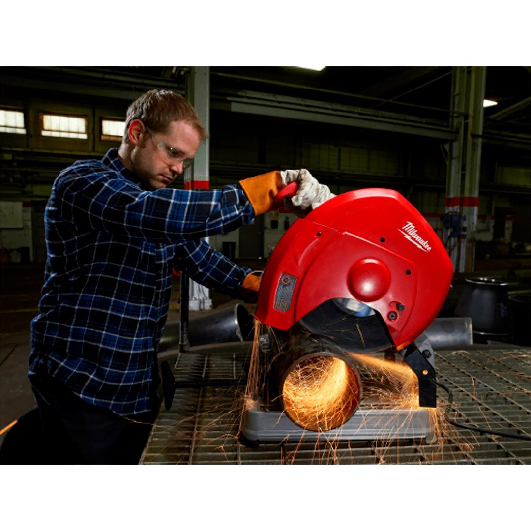 Esta máquina de corte abrasivo permite el corte rápido de rieles de paneles de yeso en paquetes, ángulos de hierro, conductos, tuberías, canales, tubos y barras de refuerzo hasta 5 » máxima capacidad.