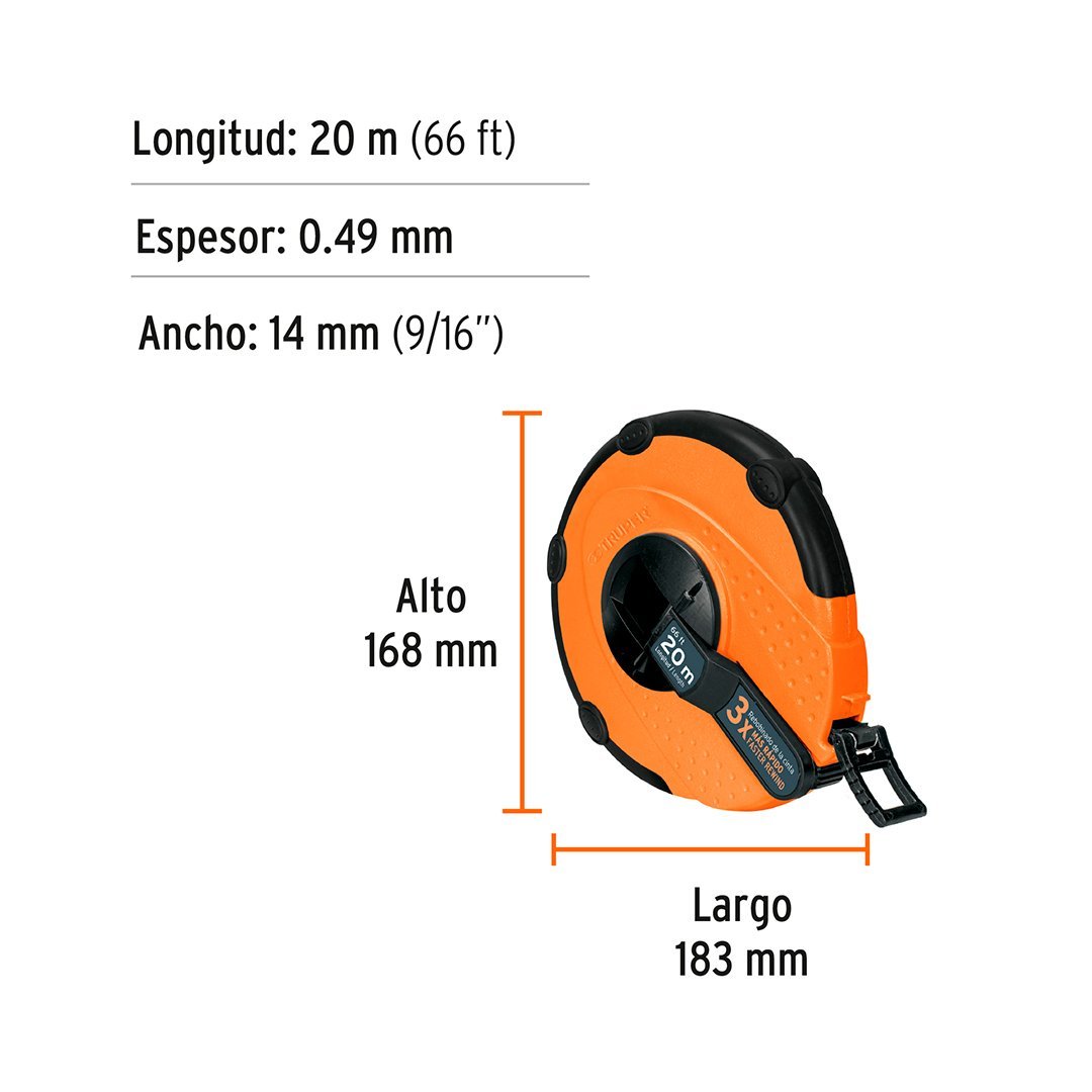 Wincha de fibra de vidrio 20 m carcasa plástica TRUPER 12638 cantidad