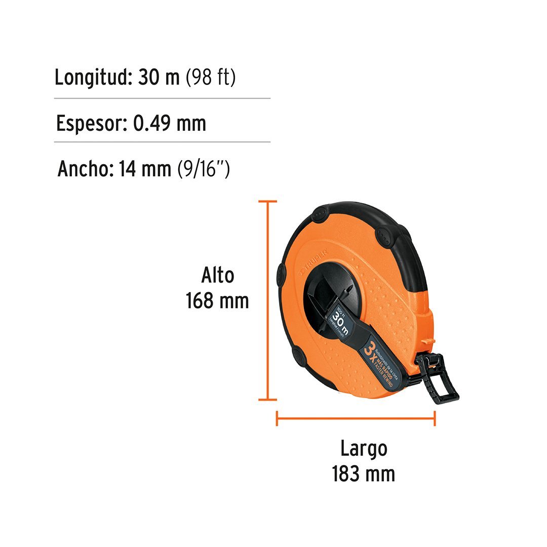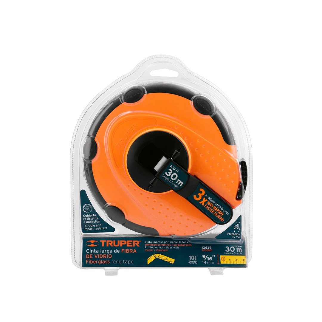 Wincha de fibra de vidrio 30 m carcasa plástica TRUPER 12639 cantidad