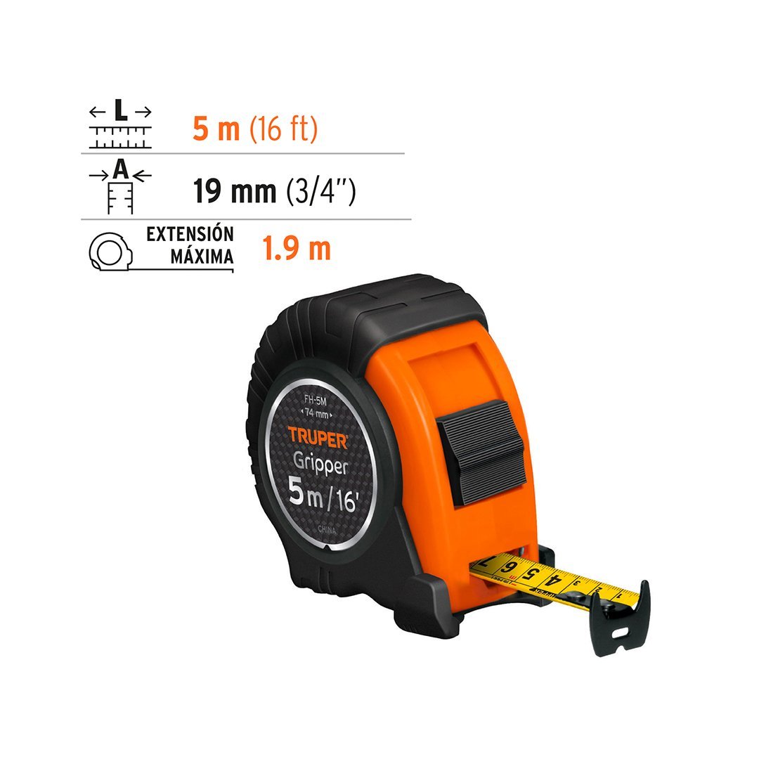 Wincha Gripper 5 m contra impactos TRUPER 14578 cantidad