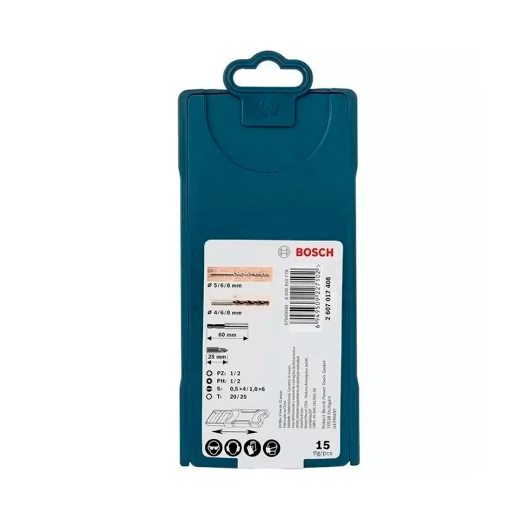 Juego set 15 piezas mini X line mechas puntas Bosch multi-propósitos diseñadas para distintos tipos de uso en los diferentes materiales aptos para utilizarlas.
